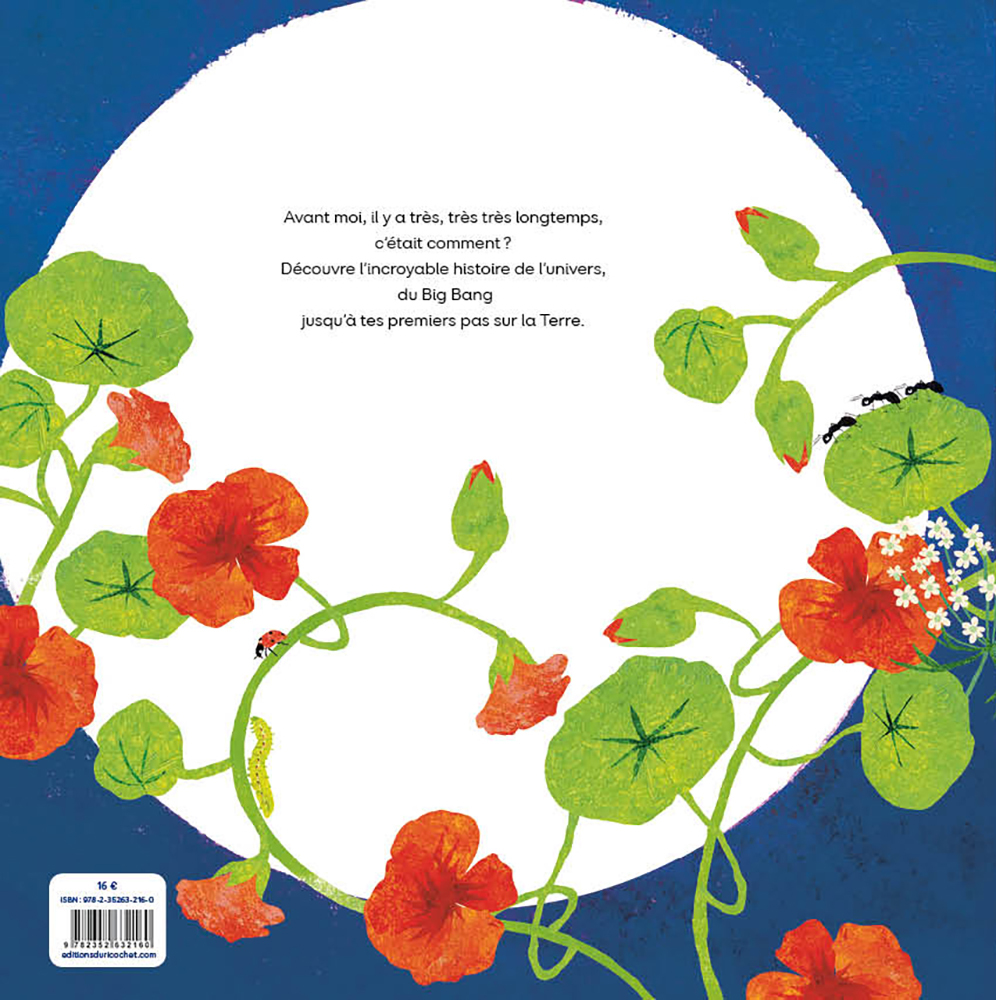 Embarquons dans une odyssée étonnante à travers l’espace et le temps ! Voyagons de l’échelle de l’immensement grand jusqu’à celle microscopique, depuis les temps les plus anciens du Big Bang jusqu’à l’arrivée aujourd’hui du bébé qui nait. Ce magnifique album au format généreux raconte l’évolution de la vie sur Terre.