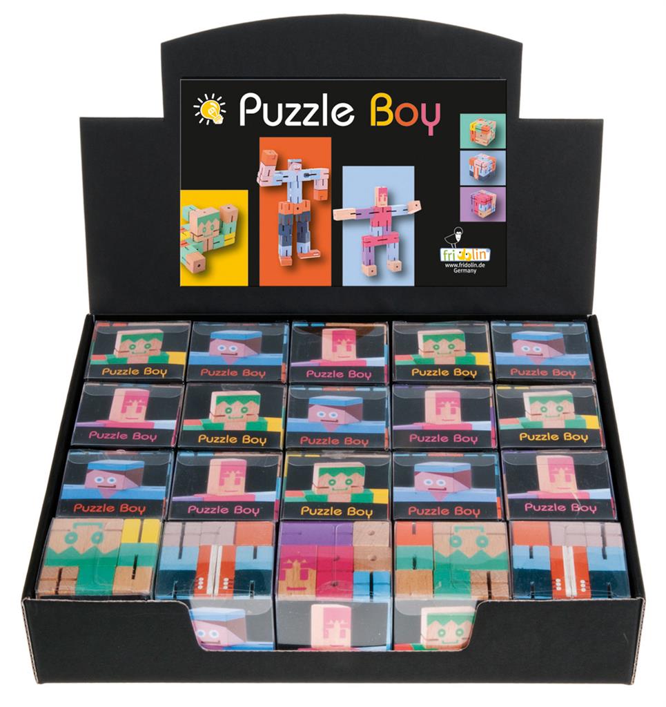 CASSE-TETE PUZZLE-BOY 5X5X5CM, EN BOIS MULTCOLORE, EN BOITE, EN PRESENTOIR, 3+