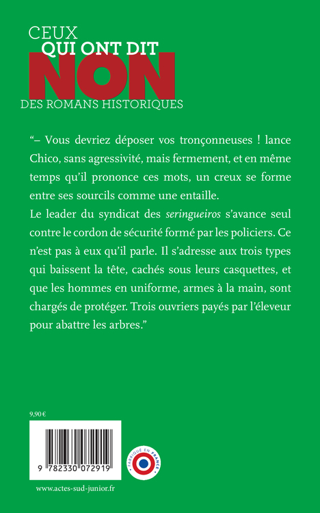 Chico n’a que neuf ans quand son père l’emmène pour la première fois récolter le latex au coeur de la forêt amazonienne. Chico est seringueiro, comme son père. Le petit garçon rêve plus que tout d’apprendre à lire et à écrire, pour ne plus dépendre totalement du patron. Sa rencontre avec Euclide, un ancien militaire, va changer sa vie. Au fil des pages, le lecteur suit le parcours du jeune homme, devenu leader du syndicat des seringueiros, et son combat poignant pour la forêt, contre ces hommes qui veulent abattre les arbres de plus en plus vite afin de développer une agriculture intensive. En 1987, Chico est soutenu par des hommes du monde entier, convaincus comme lui qu’il faut préserver cette fantastique réserve animale et végétale, car défendre les arbres, c’est défendre les hommes et refuser les injustices , mais dans son pays tout le monde ne voit pas ses actions d’un très bon oeil…