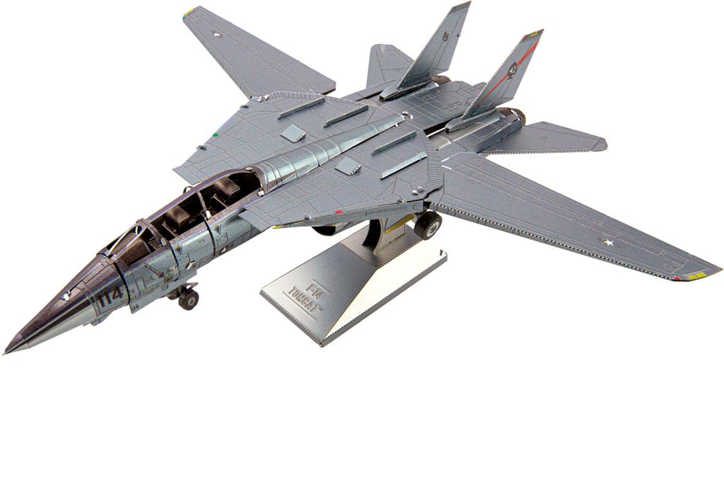 F-14 TOMCAT 16.69X14.61X5.8CM, MAQUETTE 3D EN METAL AVEC 3 FEUILLES, SUR CARTE 1