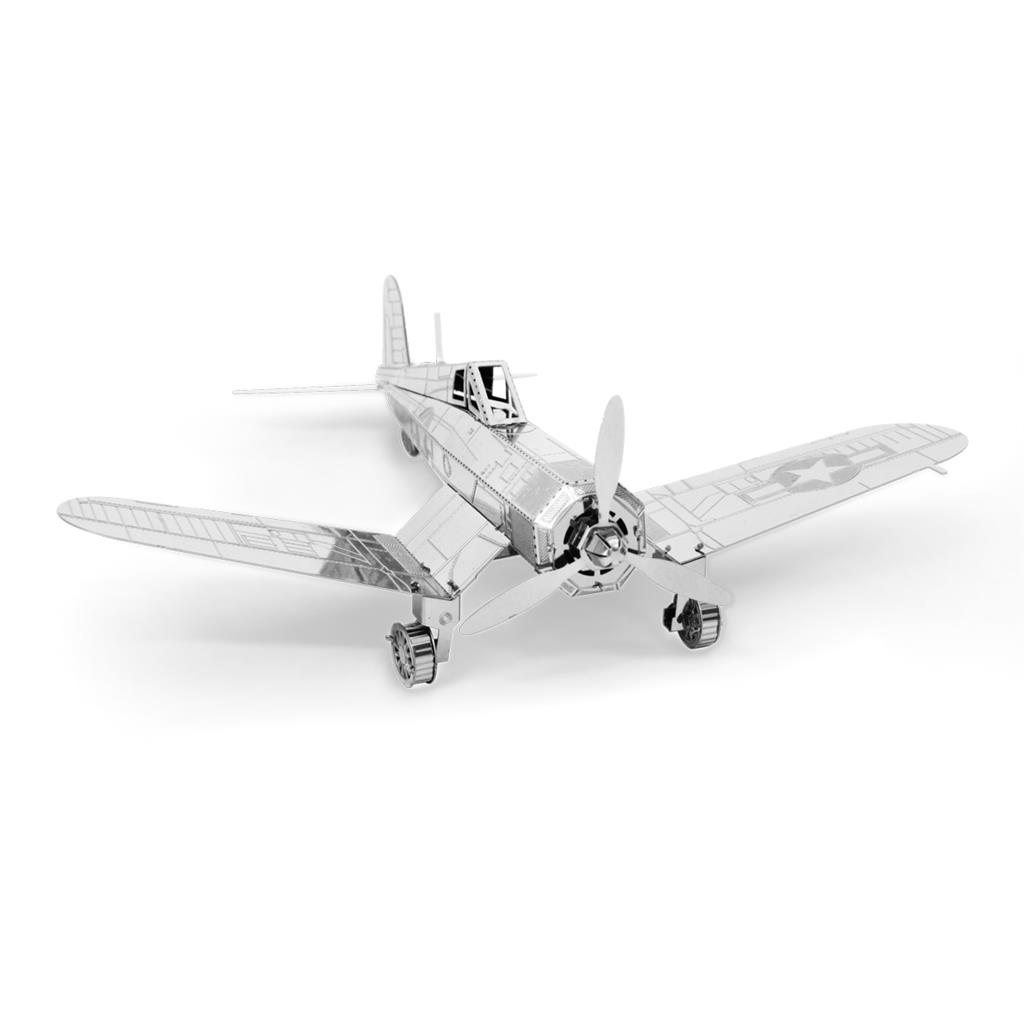 F4U CORSAIR 11.5X9.5X3.8CM, MAQUETTE 3D EN METAL AVEC 1 FEUILLE, SUR CARTE 12X17