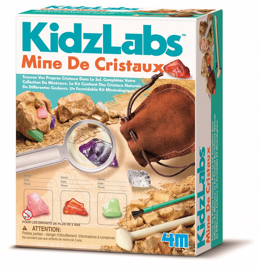 KIT DE LA MINE DE CRISTAUX / EMBALLAGE  FRANCAIS, DETERRE TES PROPRES MINERAUX,