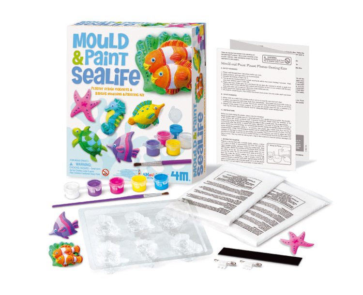 KIT DE MOULAGE: LA VIE MARINE, CONTIENT MOULES, PLATRE, PEINTURE, BROSSE, AIMANT
