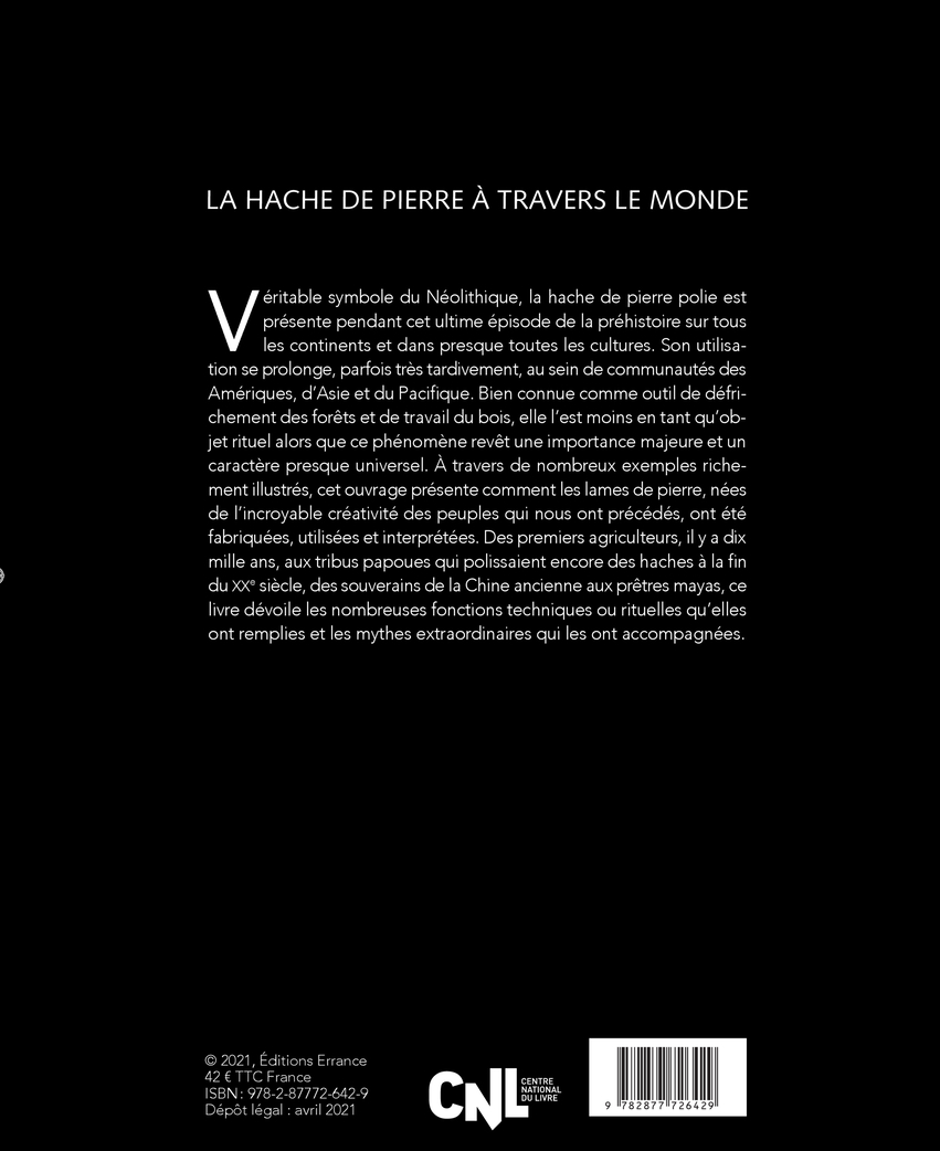 Véritable symbole du Néolithique, la hache de pierre polie est présente pendant cet ultime épisode de la préhistoire sur tous les continents et dans presque toutes les cultures. Son utilisation se prolonge, parfois très tardivement, au sein de communautés des Amériques, d’Asie et du Pacifique. Bien connue comme outil de défrichement des forêts et de travail du bois, elle l’est moins en tant qu’objet rituel alors que ce phénomène revêt une importance majeure et un caractère presque universel. À travers de nombreux exemples richement illustrés, cet ouvrage présente comment les lames de pierre, nées de l’incroyable créativité des peuples qui nous ont précédés, ont été fabriquées, utilisées et interprétées. Des premiers agriculteurs, il y a dix mille ans, aux tribus papoues qui polissaient encore des haches à la fin du XXe siècle, des souverains de la Chine ancienne aux prêtres mayas, ce livre dévoile les nombreuses fonctions techniques ou rituelles qu’elles ont remplies et les mythes extraordinaires qui les ont accompagnées.