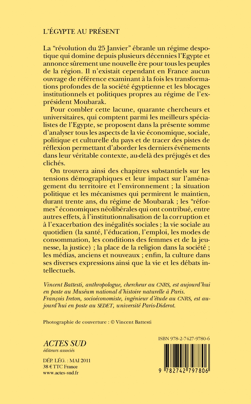 Pour combler cette lacune, quarante chercheurs et universitaires, qui comptent parmi les meilleurs spécialistes de l’Egypte, se proposent dans la présente somme d’analyser tous les aspects de la vie économique, sociale, politique et culturelle du pays et de tracer des pistes de réfl exion permettant d’aborder les derniers événements dans leur véritable contexte, au-delà des préjugés et des clichés.
